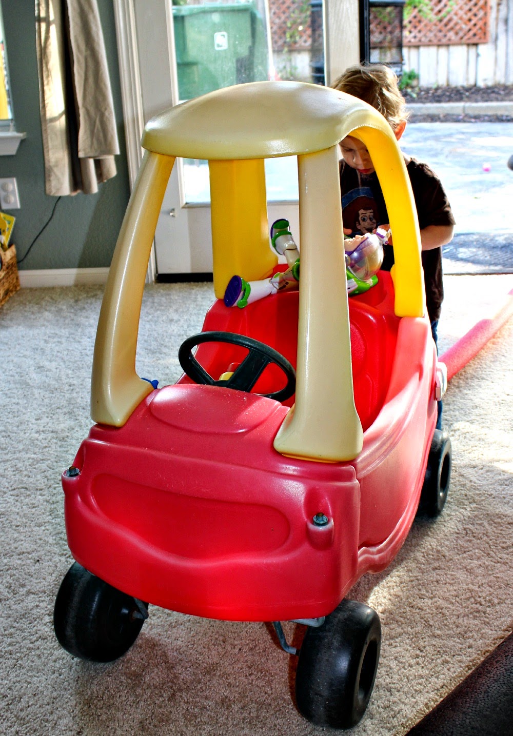 I had bought him some pull-ups to have around and Buzz was on some of them. He found them and would carry them around all day long. I started to feel bad about it, so we went and bought him his very first Buzz Lightyear. The look on his face and the excitement over having his own Buzz was something I will never forget. Buzz went everywhere with Myles from that day forward :) and now 7 months later poor Buzz is so beat up, even the toy doctor can't fix him.